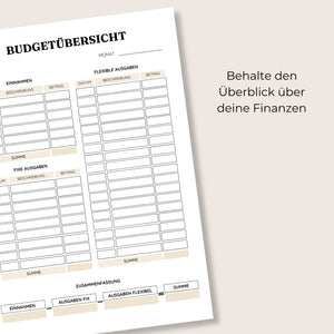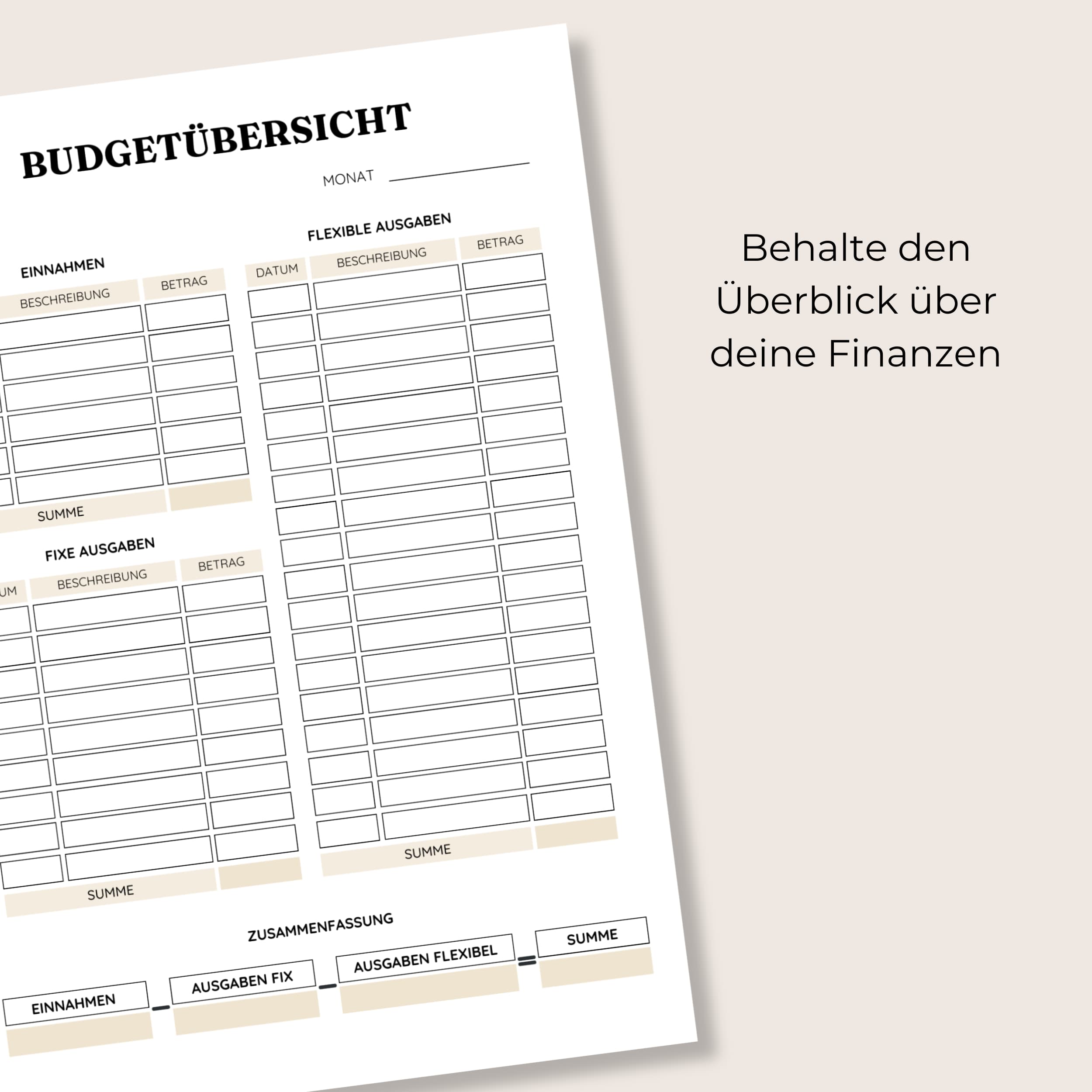 Jetzt herunterladen, ausdrucken und deine Finanzen klar und bewusst organisieren.