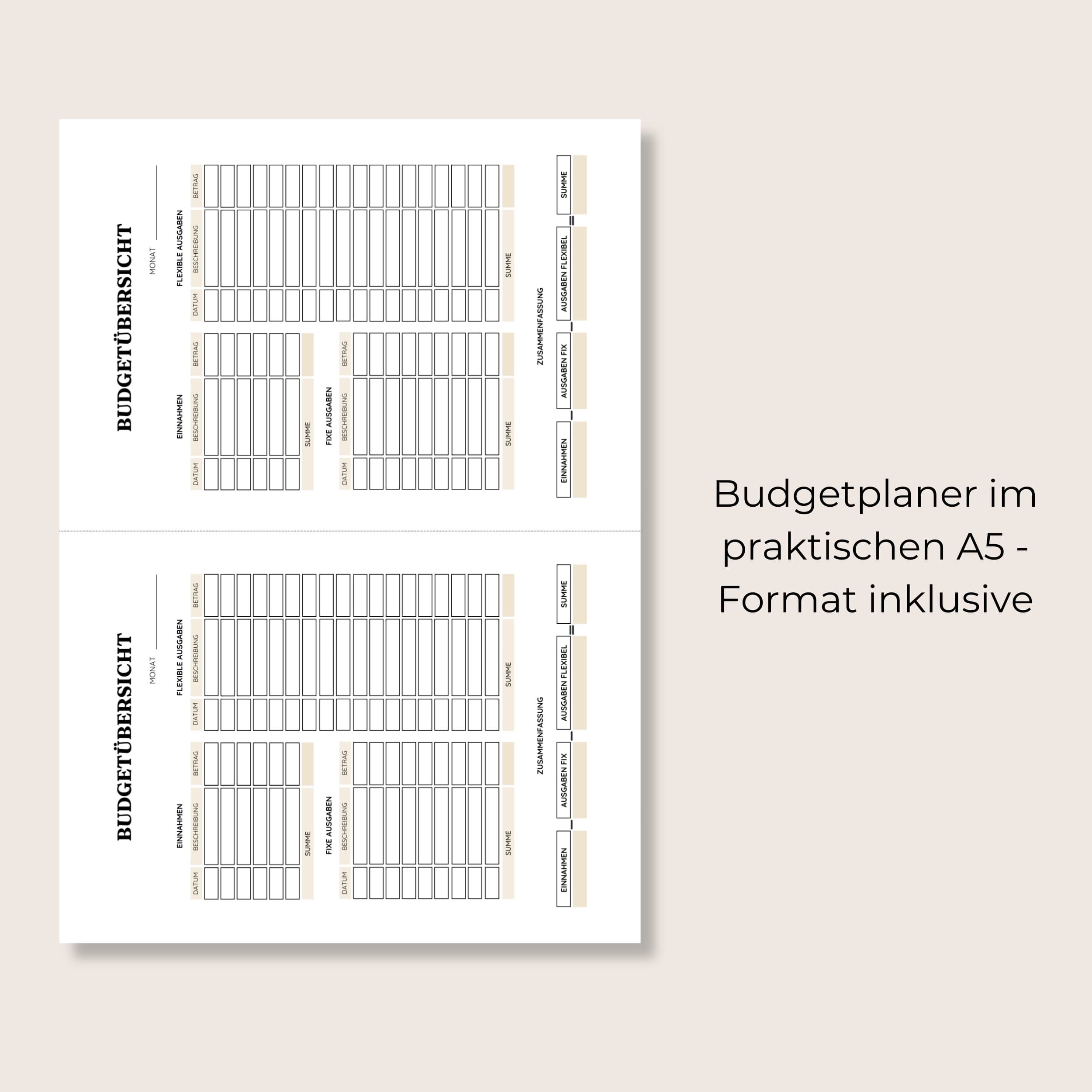 - 1 Seite mit 2 Budgetplanern im A5 Format