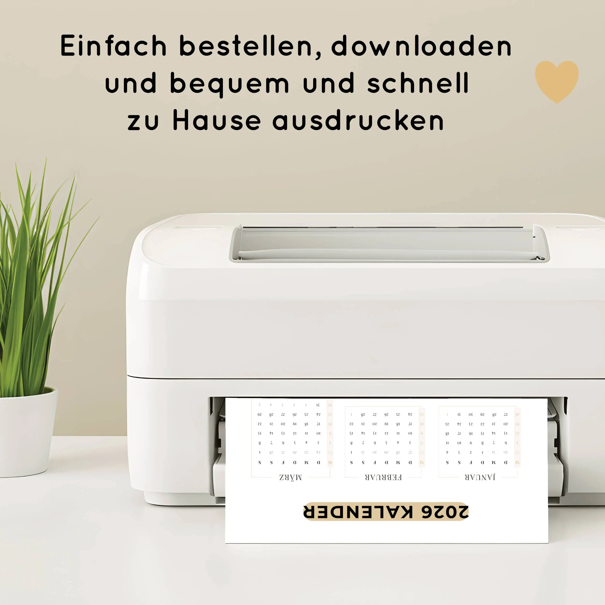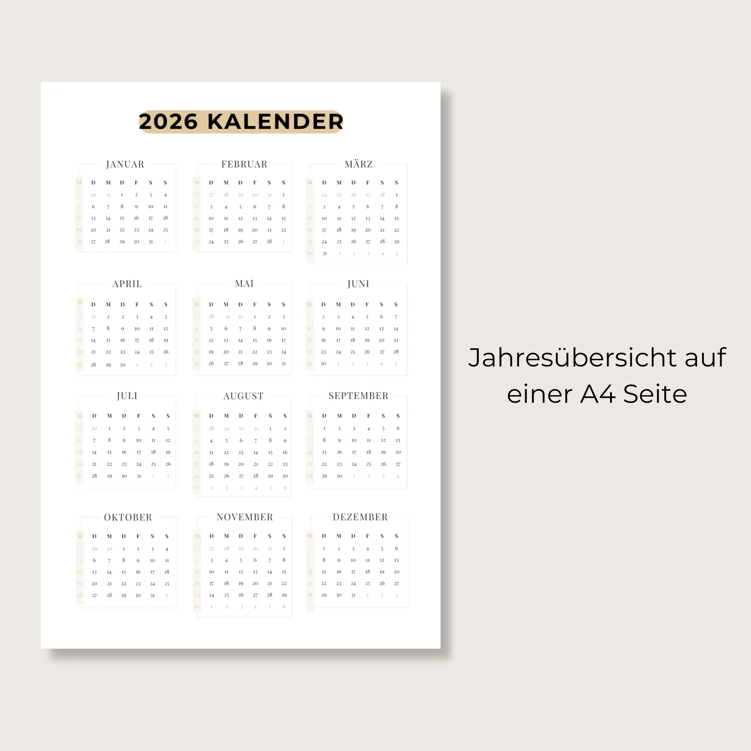 Kalender 2026 zum Ausdrucken – Stilvoller Jahreskalender & Monatsplaner (A4, PDF)