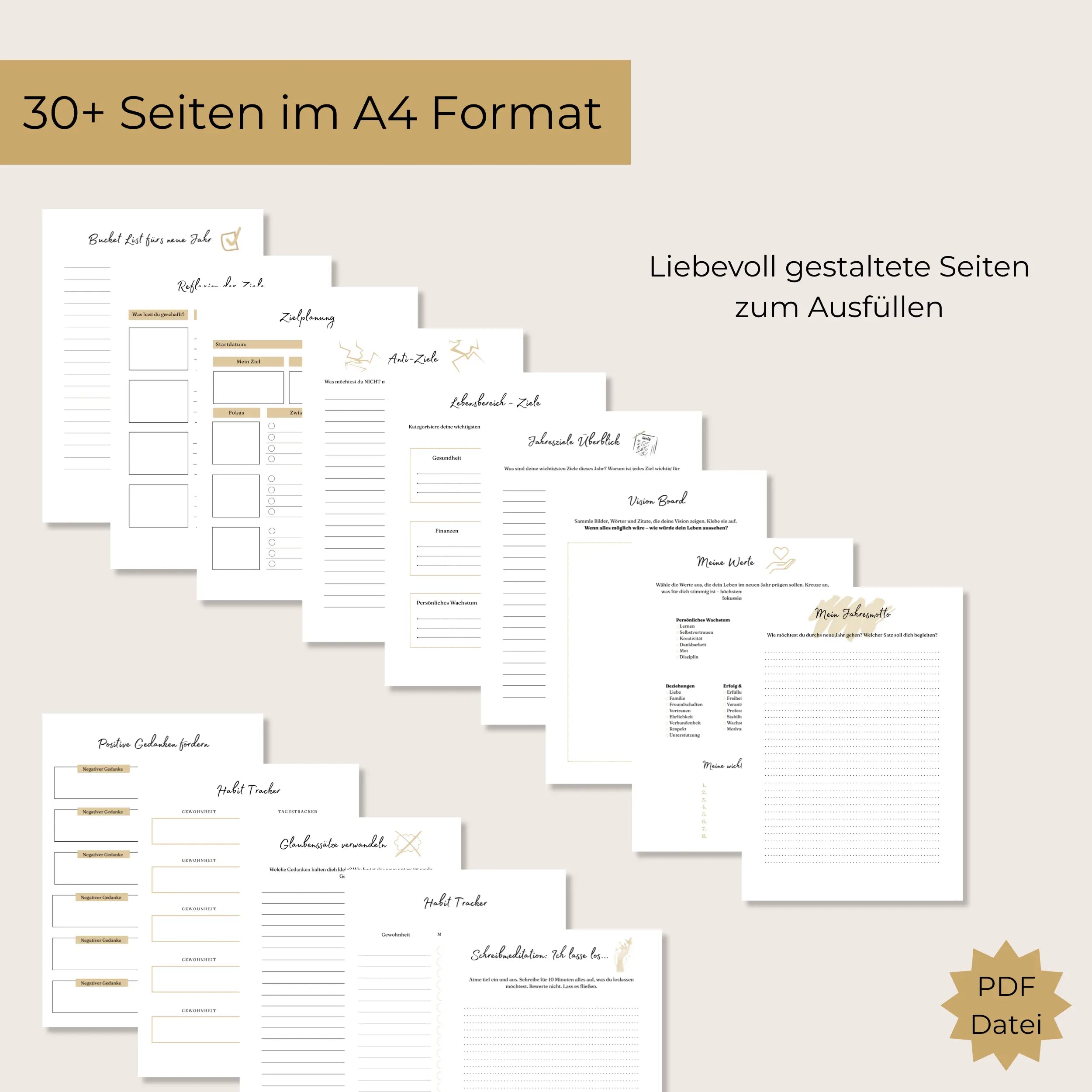 Dieses Workbook führt dich ruhig, strukturiert und ohne Überforderung durch alle wichtigen Schritte – damit du dein Jahr nicht nur planst, sondern bewusst gestaltest.
