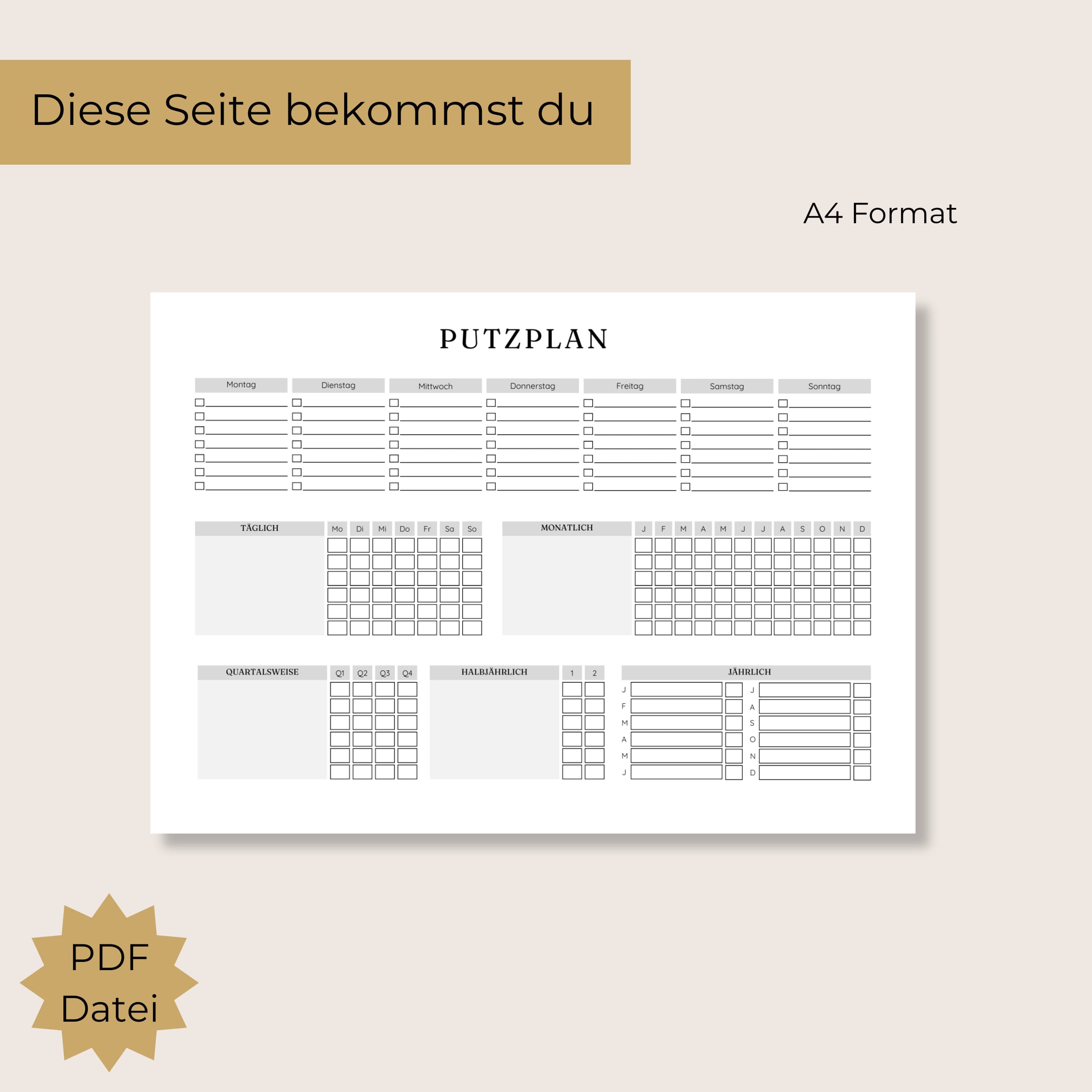A4 Putzplan zum Ausdrucken für Woche, Monat & Jahr
