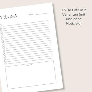 Minimalistische To-Do Liste zum Ausdrucken in 2 Varianten