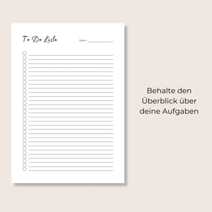 Diese minimalistisch gestaltete To-Do Liste hilft dir dabei, deinen Alltag strukturiert zu organisieren und Aufgaben Schritt für Schritt abzuhaken.