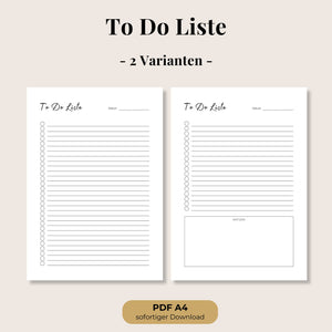 To-Do Liste – Minimalistische Aufgabenliste mit 2 Varianten