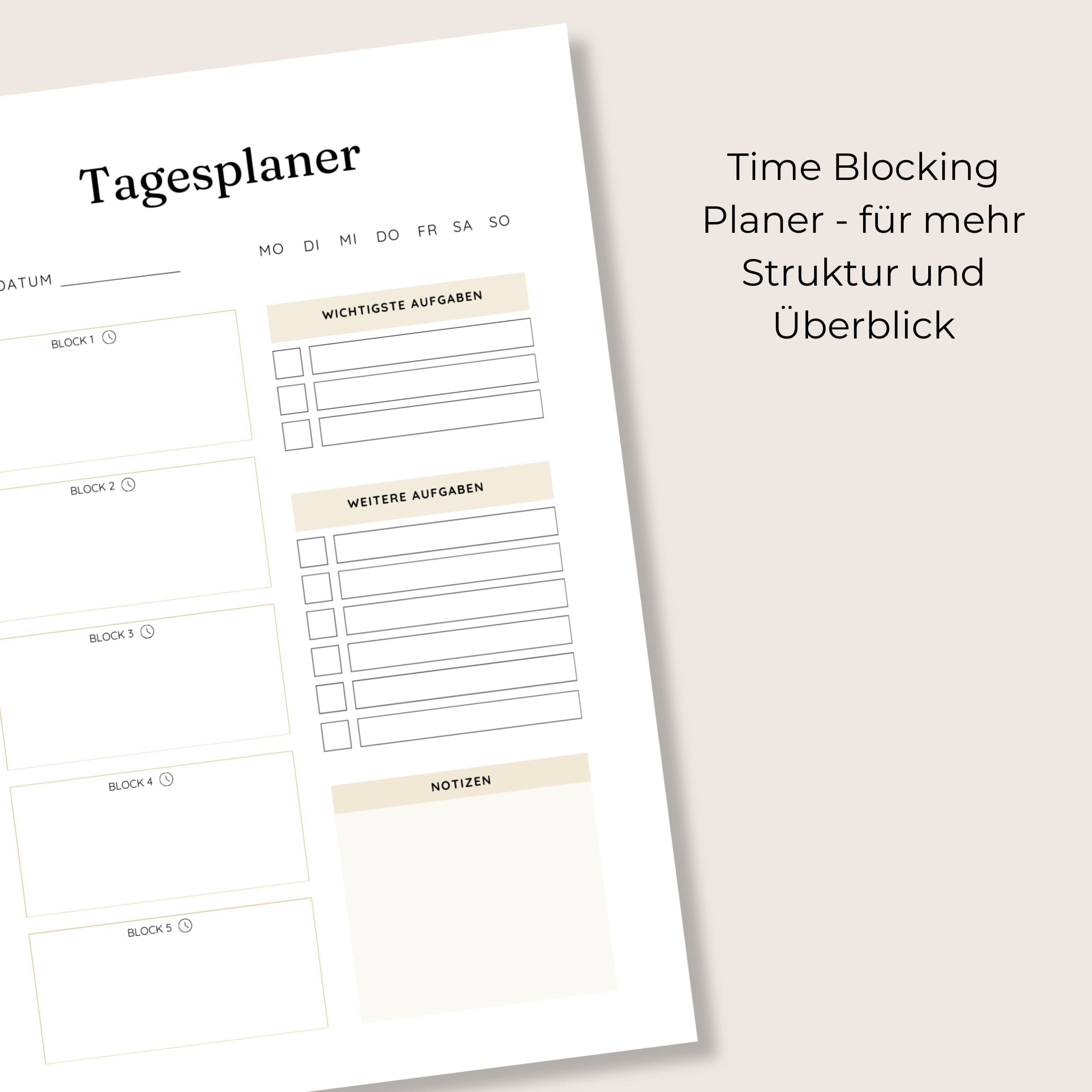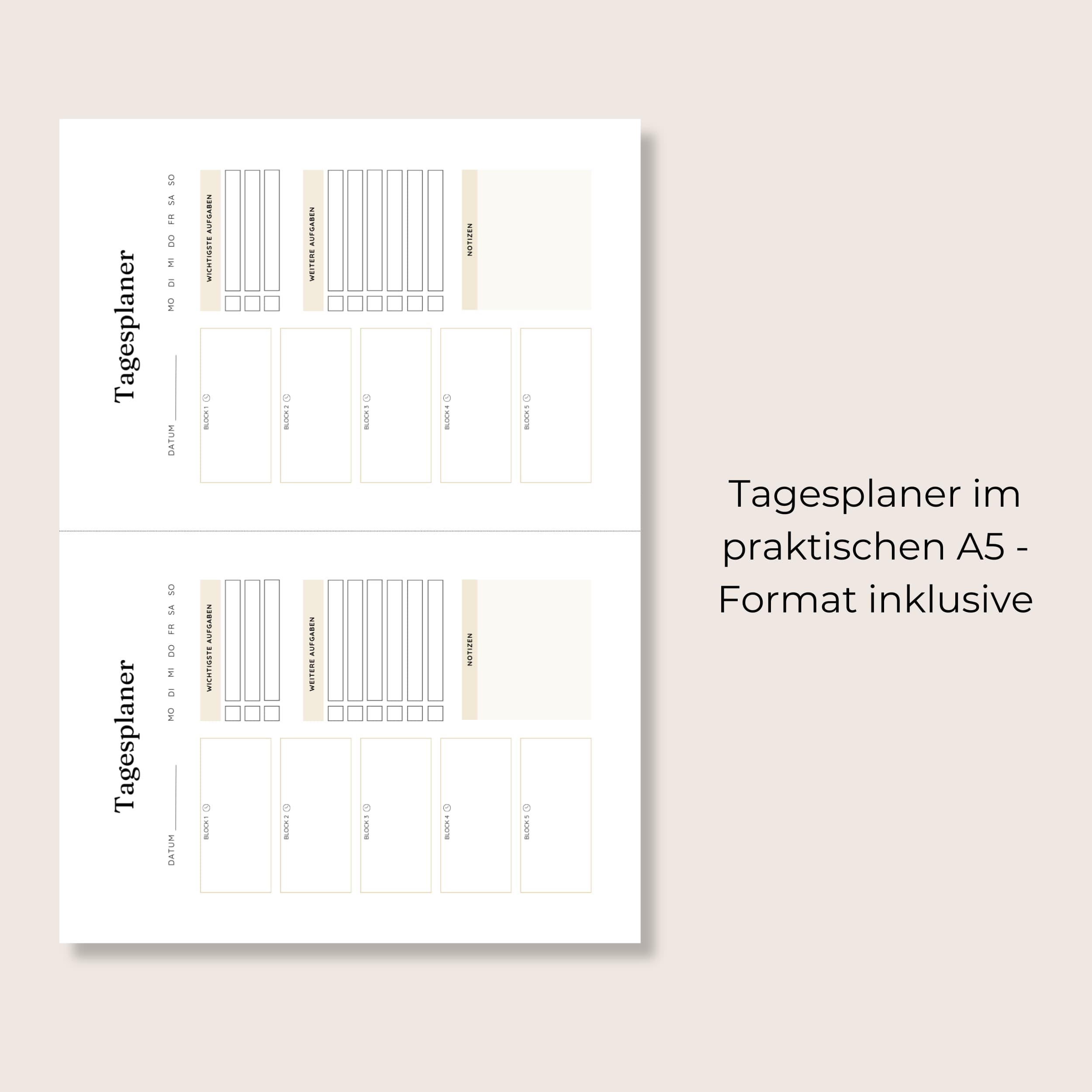 - Tagesplaner mit 5 Zeitblöcken