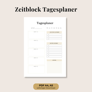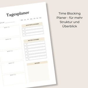 Zeitblock Tagesplaner zum Ausdrucken – Tagesstruktur mit Time Blocking