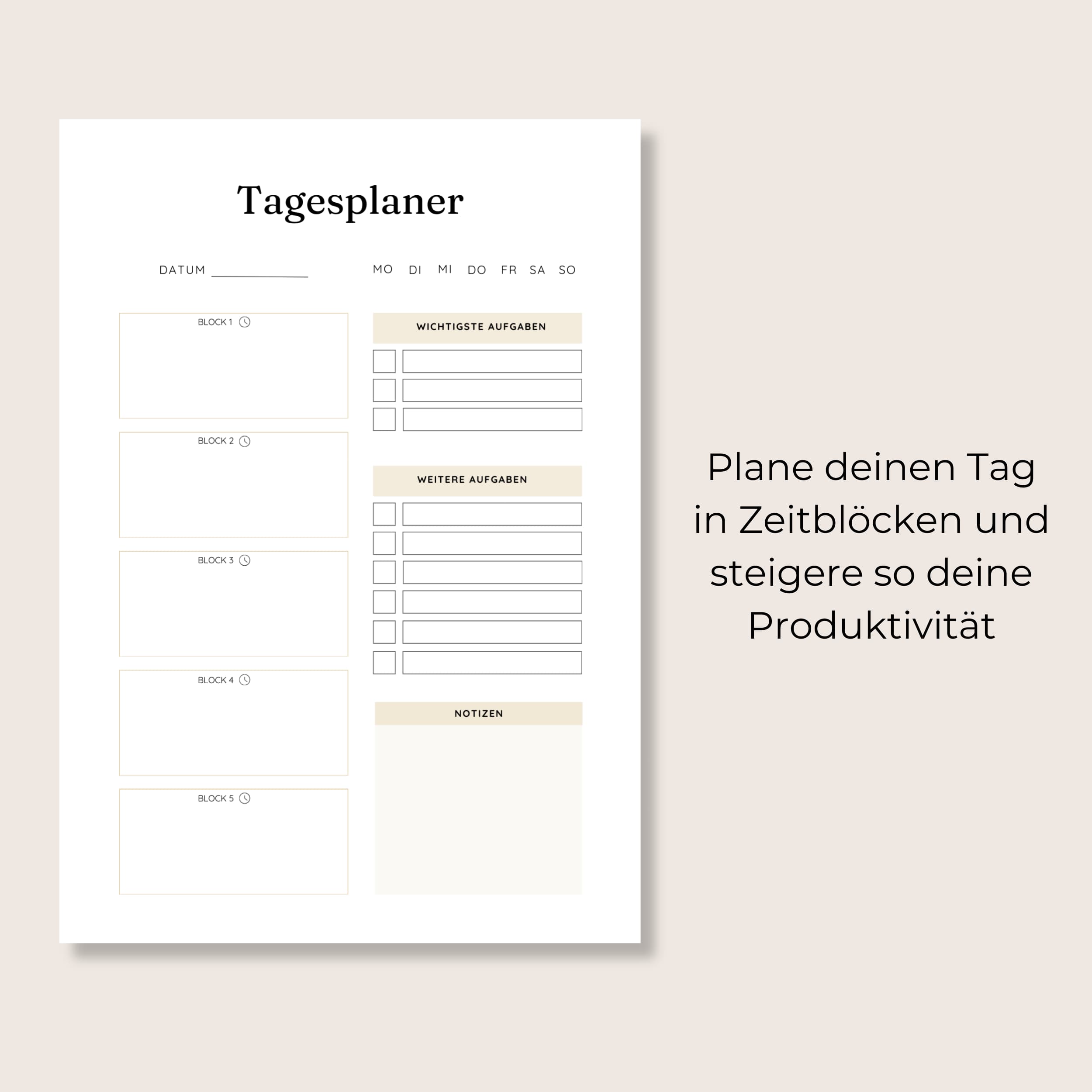 Jetzt herunterladen, ausdrucken und deinen Tag klar, fokussiert und bewusst planen.